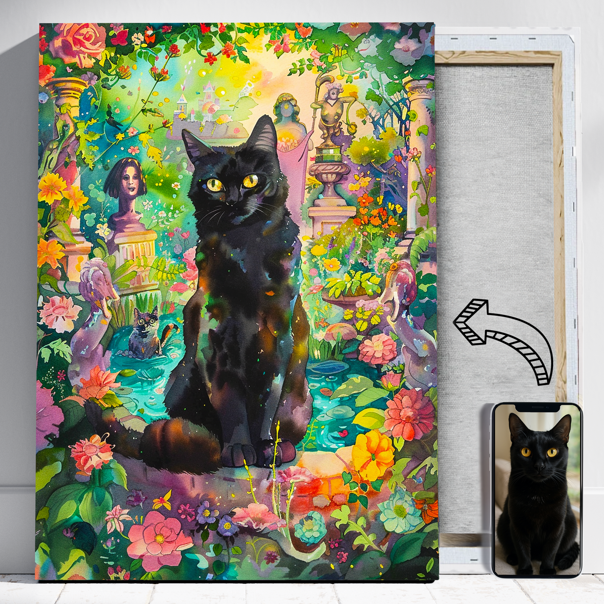 Kot w kolorowym ogrodzie jak malowany - Portret kota ze zdjęcia na zamówienie