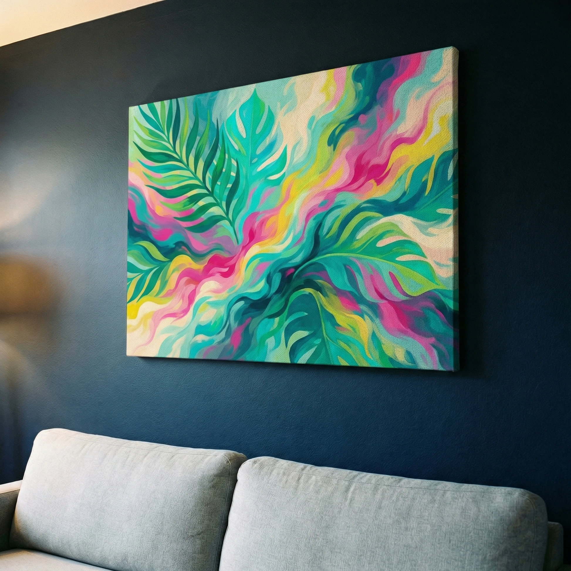Liście z kolorowym tłem - Obraz na płótnie na ścianę do salonu lub sypialni